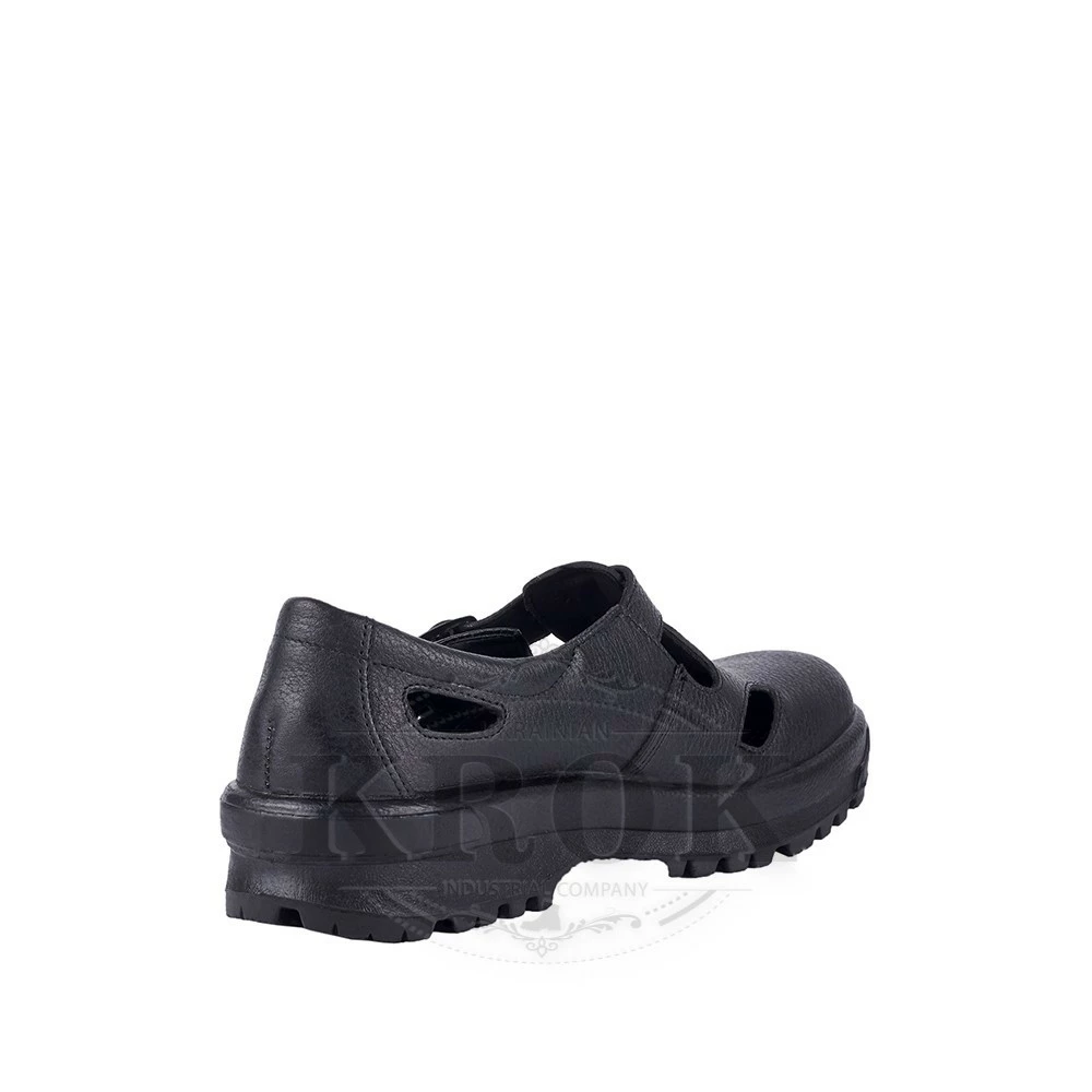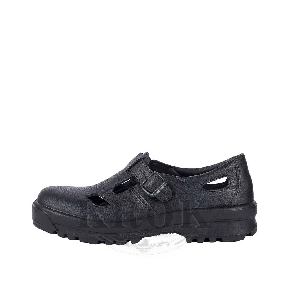 Открытый верх выполнен из натуральной кожи (юфть) высокого качества. Дополнительные отверстия и перфорация на коже верха обеспечивают хороший воздухообмен. Застежка на никелевой пряжке удобна для любого подъема. Сверхлегкий широкий усиленный подносок, не подвержен резкому нагрева или охлаждения. Оснащены комфортной для носки стелькой. Приливная подошва из двухслойного полиуретана, делает обувь исключительно стойкой к влаге и агрессивным средам, придает прочность. Высокая износостойкость, даже после длительной носки обувь не теряет внешнего вида и защитных свойств.